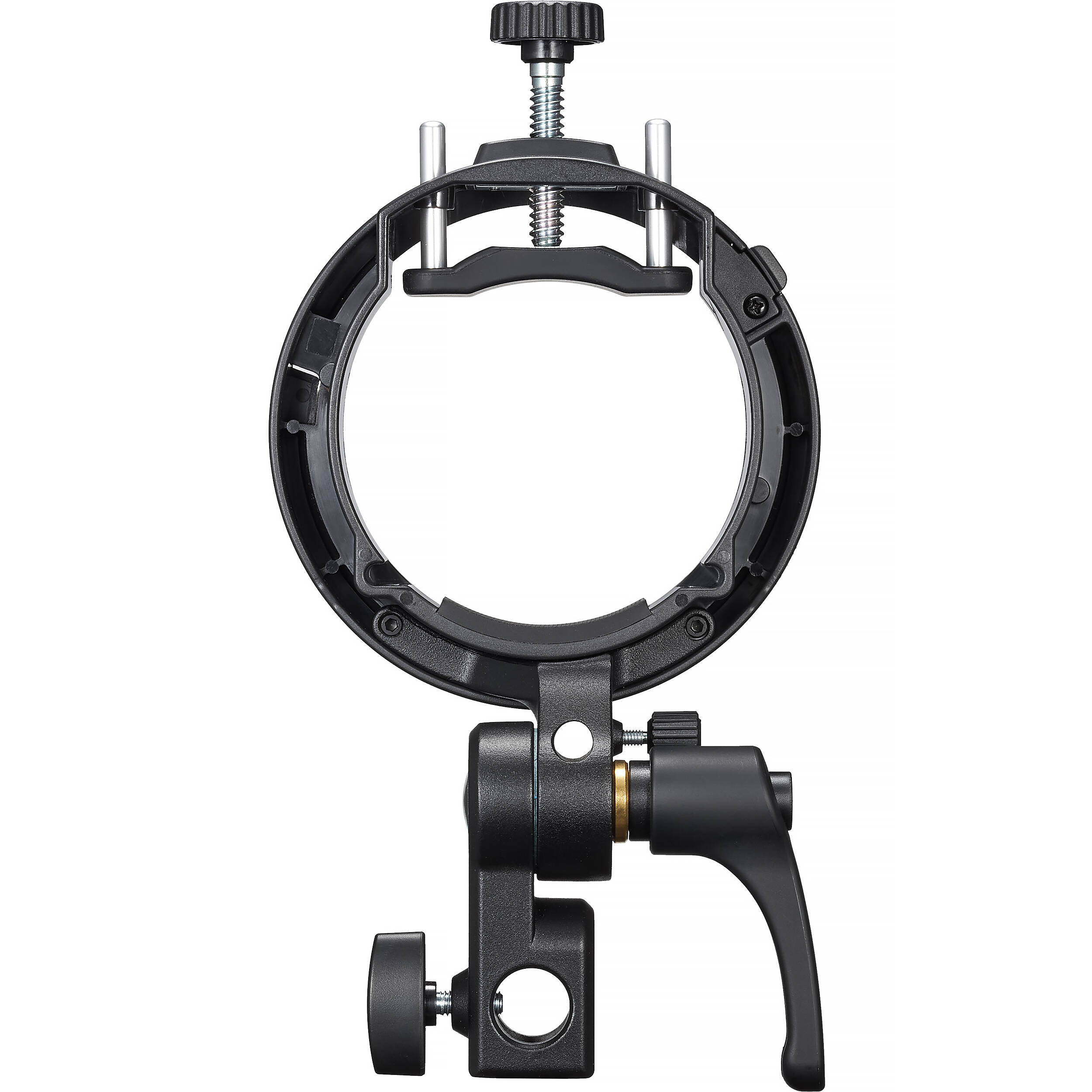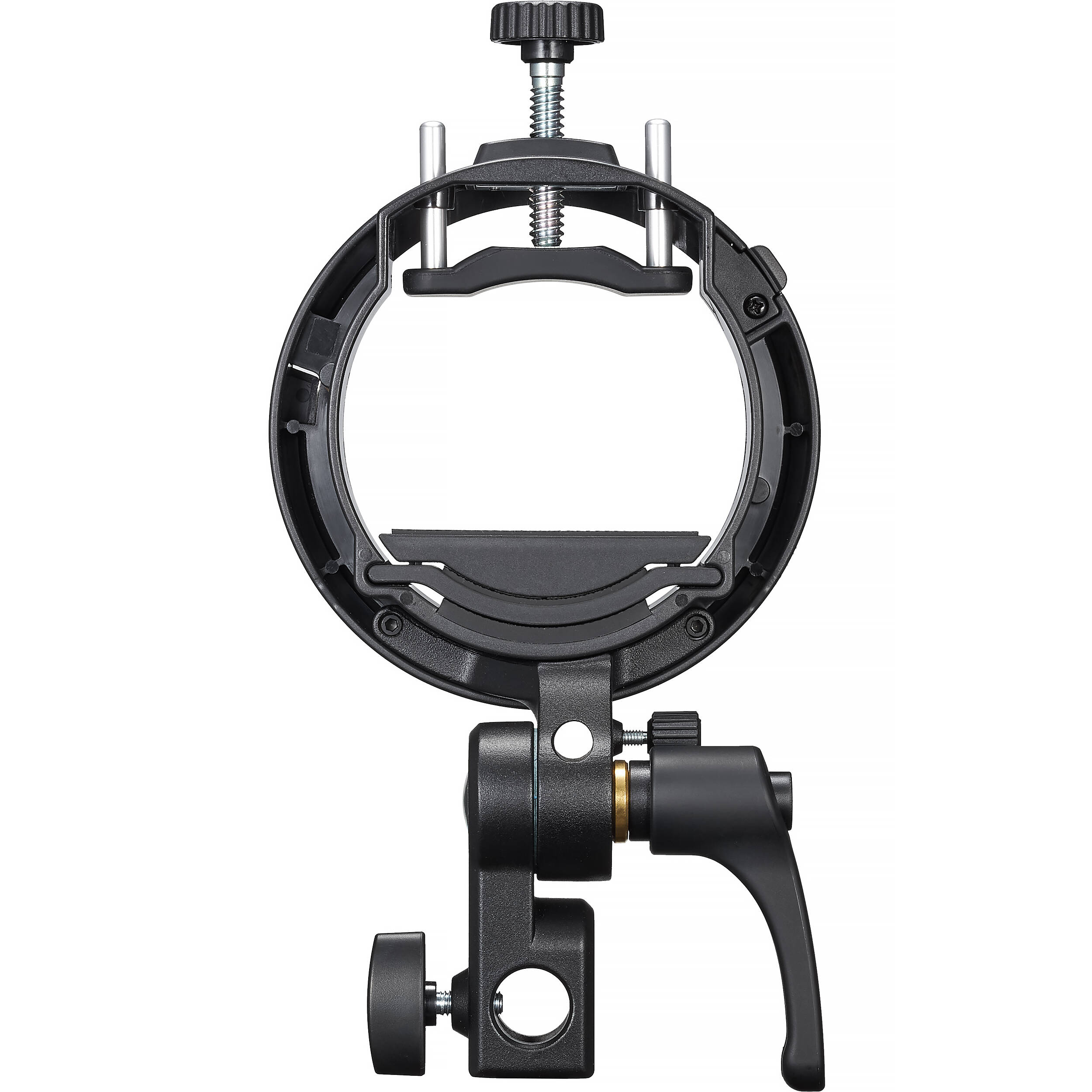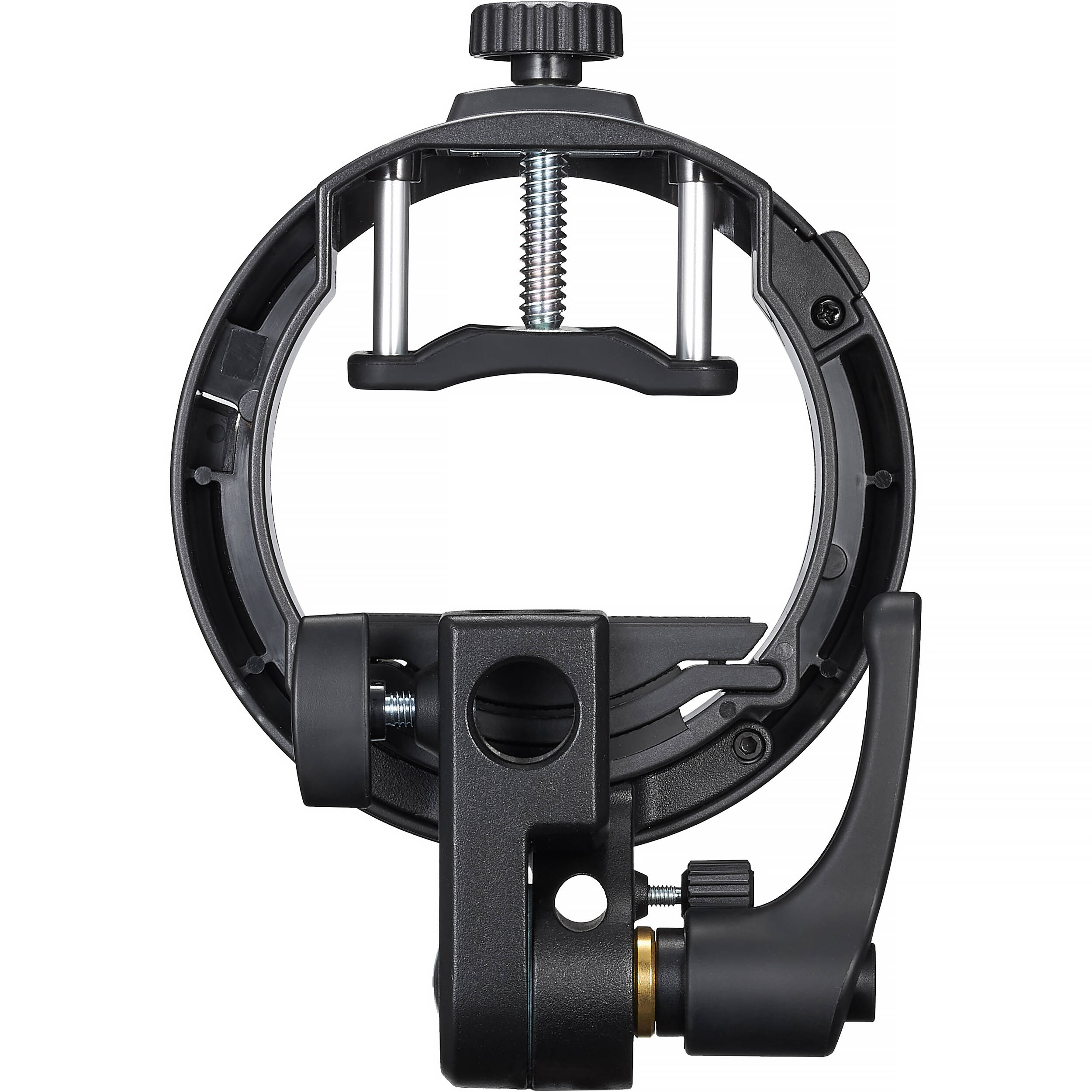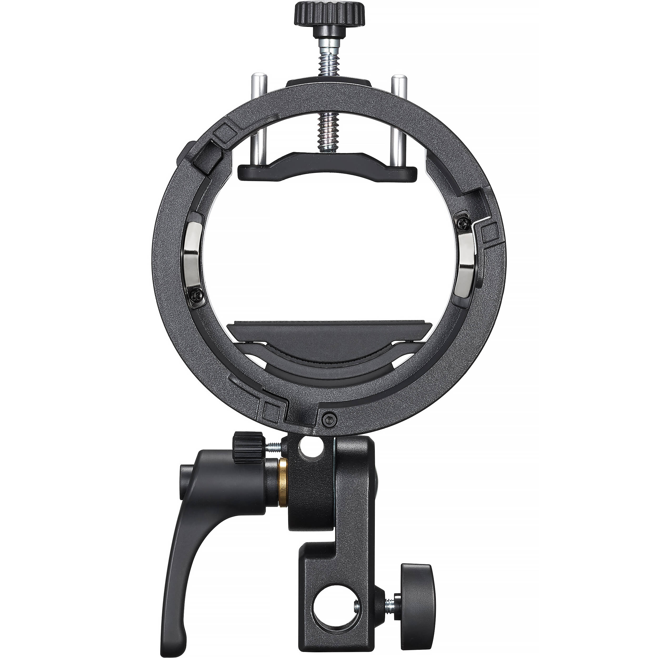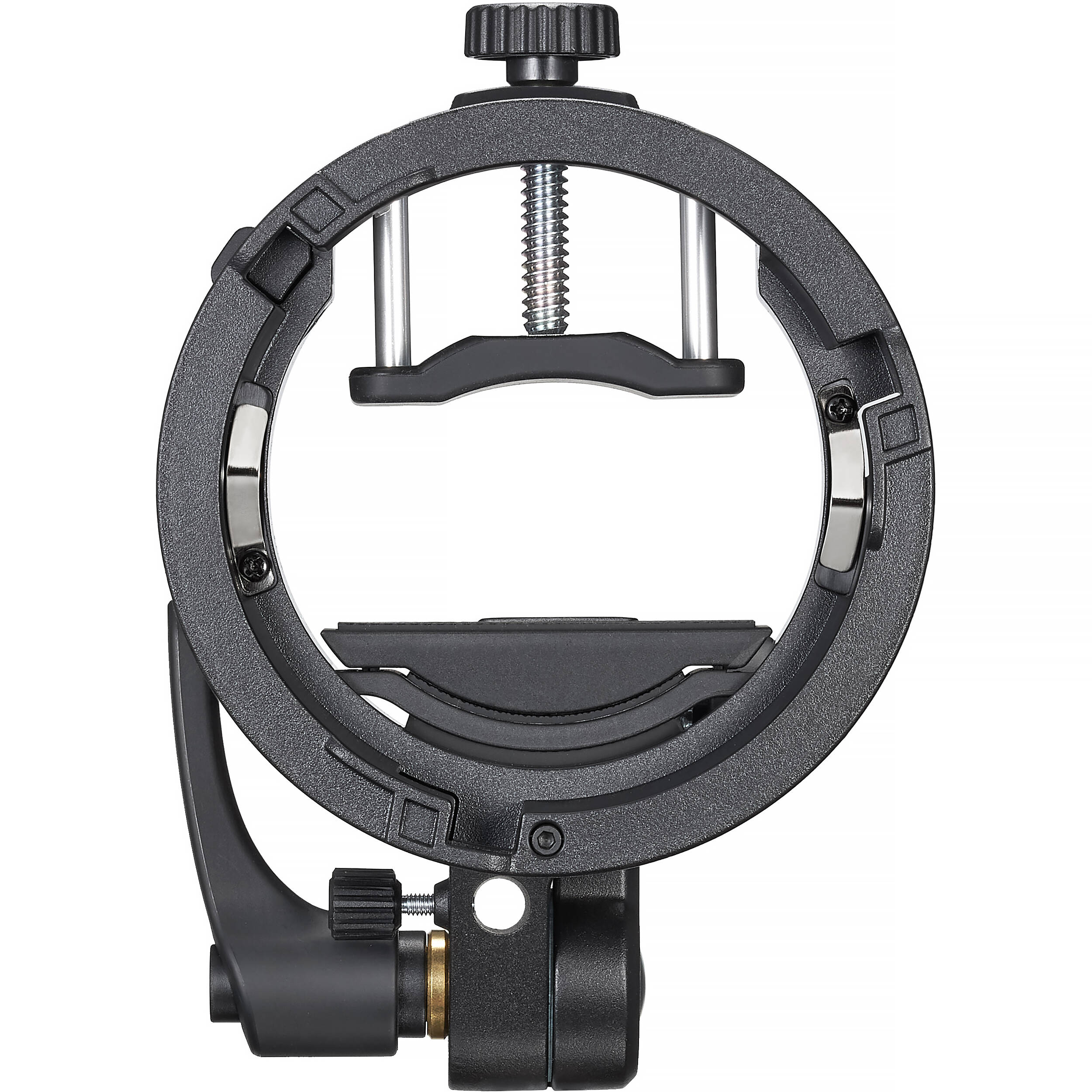 Адаптер S3 оснащён отверстием для быстрой установки фотозонтов. В основании предусмотрено крепление для установки адаптера непосредственно на студийную стойку.