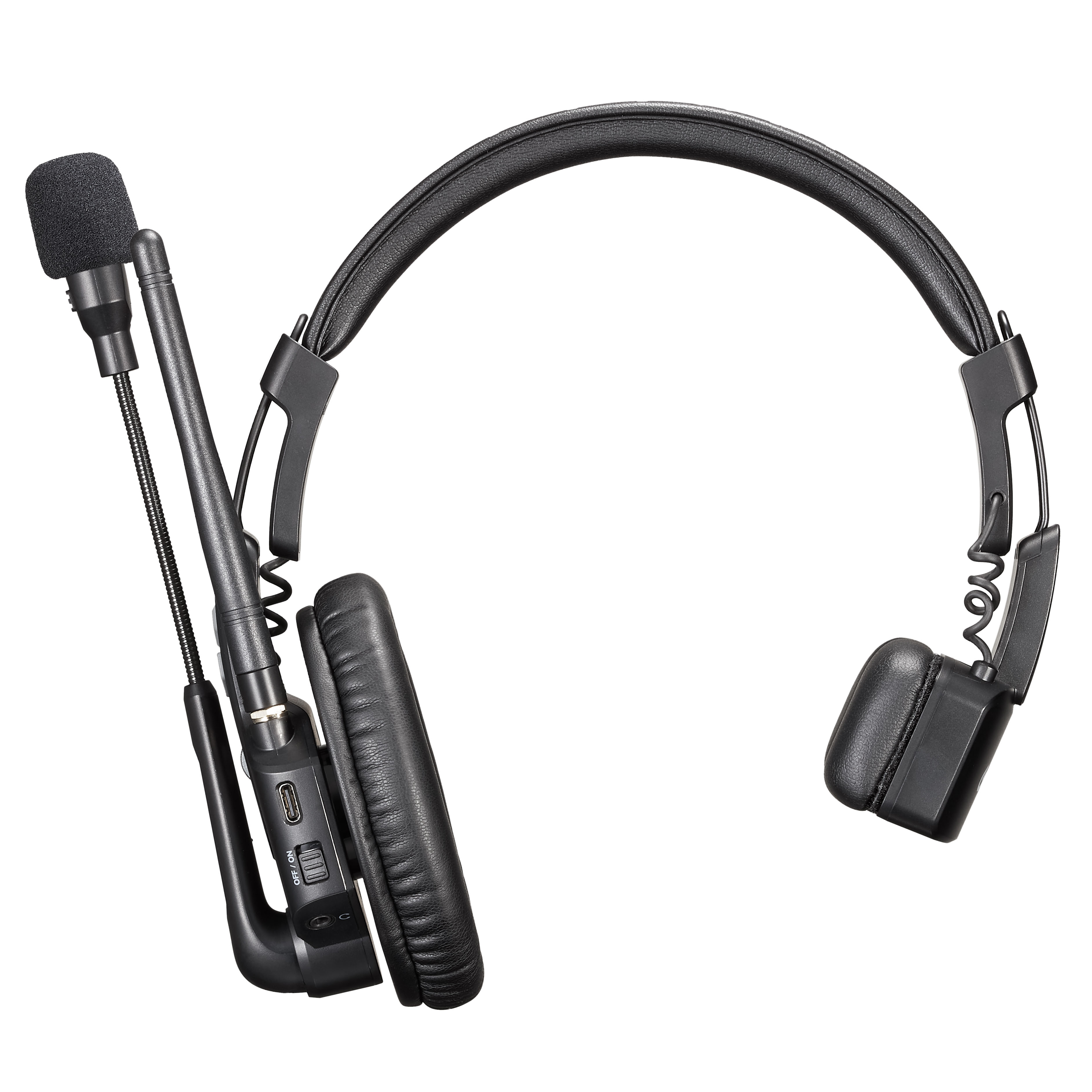 Управление с помощью поворотного держателя микрофона: поверните его вверх, чтобы отключить звук, вниз — чтобы говорить. Удерживайте кнопку PTT на дужке для включения режима PTT, отпустите для отключения звука.