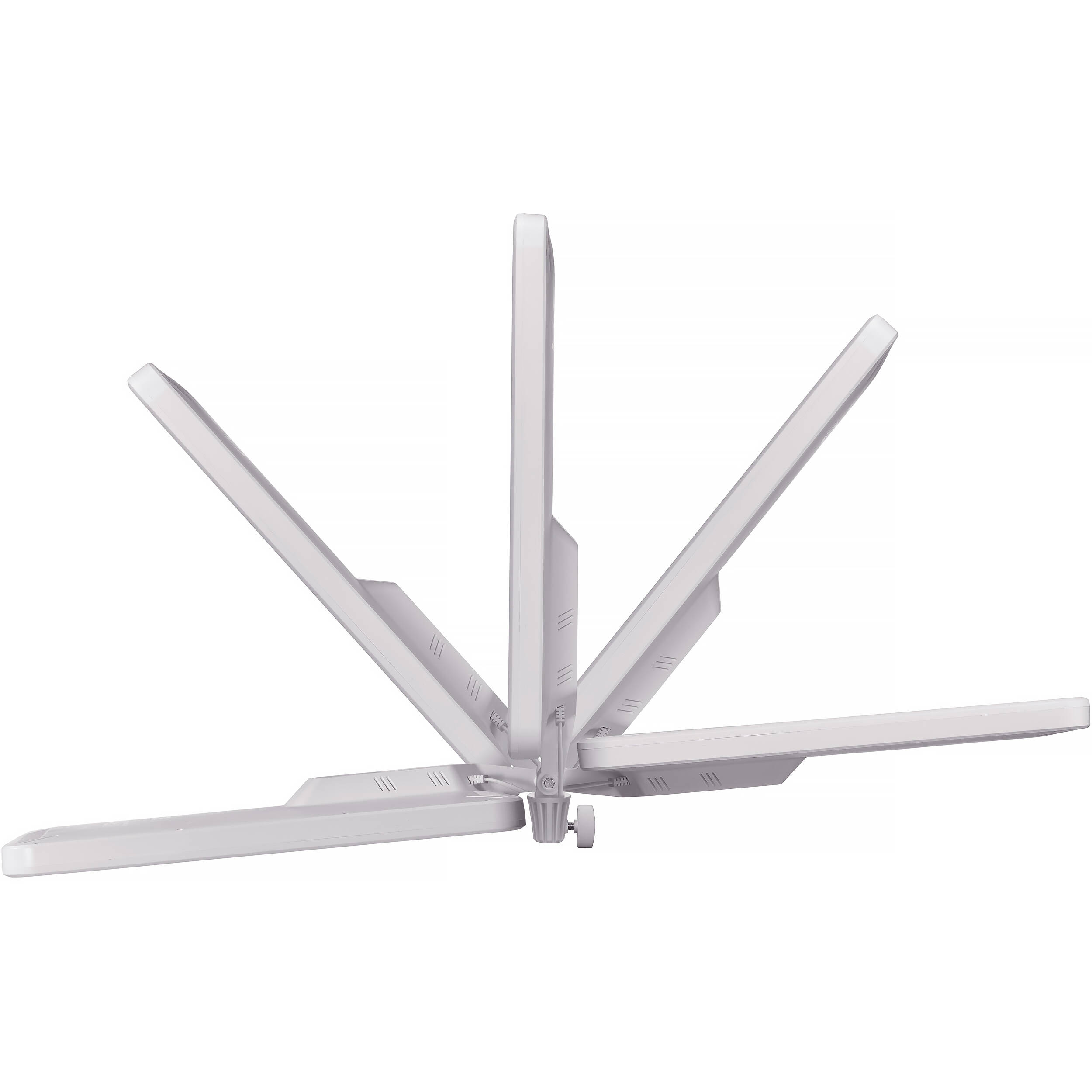 Поворотный кронштейн обеспечивает наклон осветителя в пределах 180° и надежно фиксирует прибор в требуемом положении, позволяя точно выстраивать свет при съёмке за столом, в полный рост или при верхнем расположении источника.