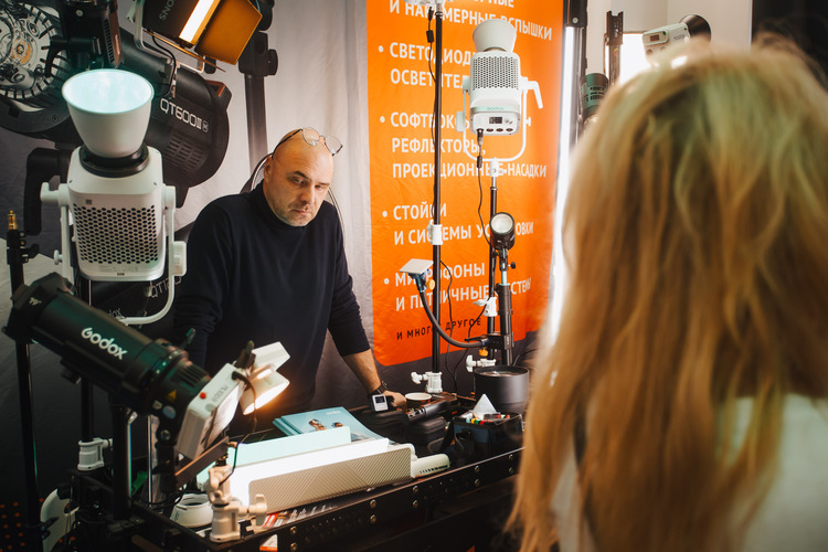 На нашем стенде гости и участники проводили тест-драйвы нашего оборудования, получали профессиональные консультации от наших экспертов, а также побывали на мастер-классе Олега Зотова — знаменитого фотографа, который показал, как раскрыть потенциал техники Godox в профессиональных фотосъемках.