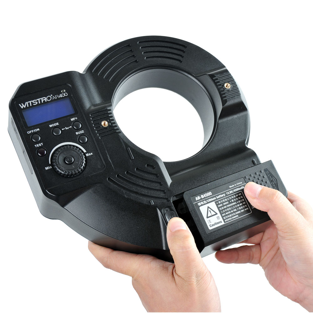 Мощная кольцевая вспышка AR400 является одним из важнейших устройств серии Witstro, обеспечивая бестеневое освещение и равномерные световые эффекты при высокой мощности и компактном корпусе. Новый дизайн со встроенной литиевой аккумуляторной батареей позволяет приобрести новый опыт в освещении.