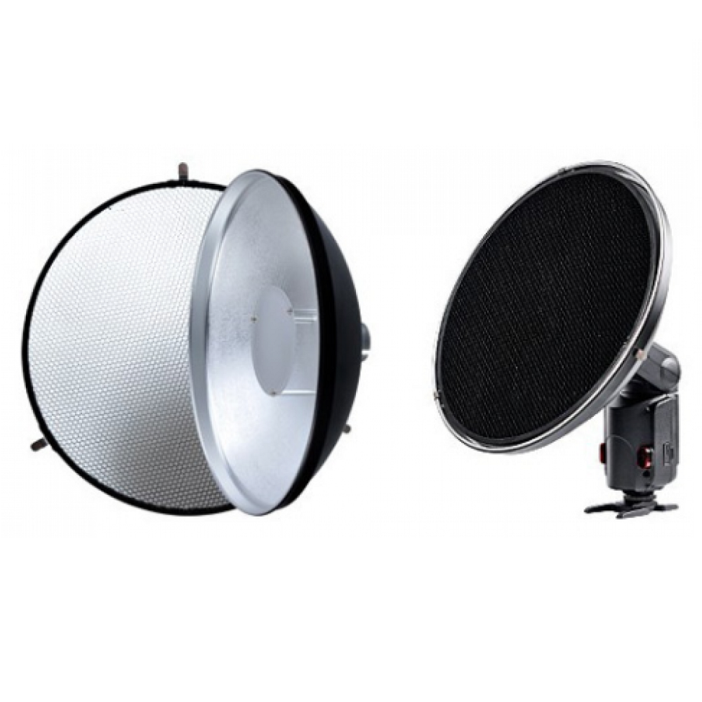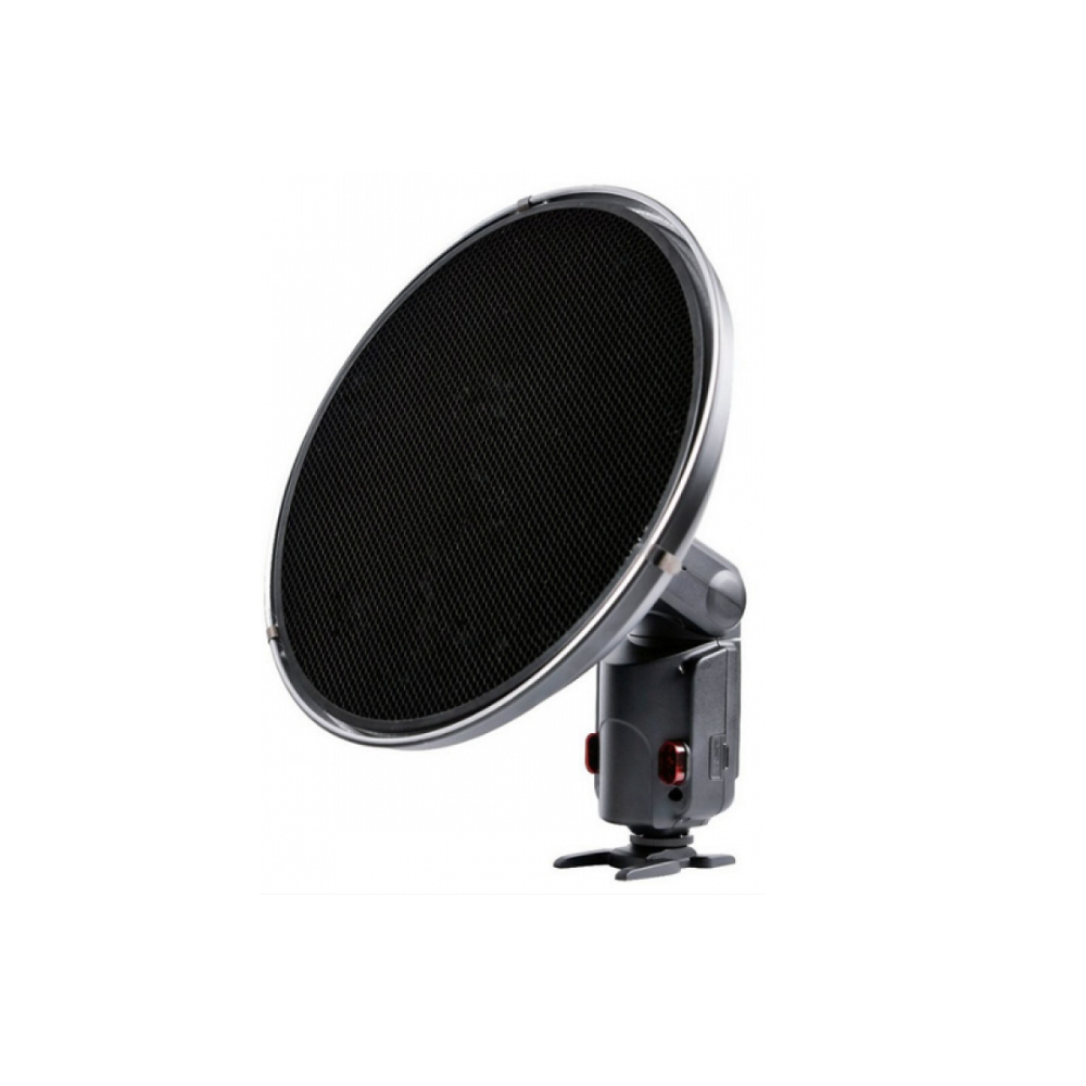 Портретная тарелка Godox AD-S3 для вспышки Godox WITSTRO позволяет создавать равномерное бестеневое освещение вокруг объекта. Возможна установка сот (грид) и белого диффузного рассеивателя