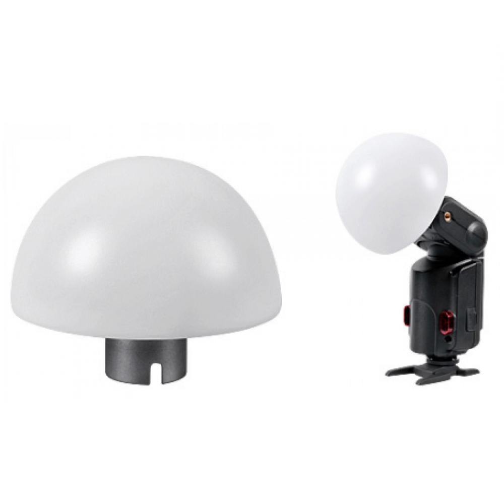 Широкоугольный рассеиватель в виде полусферы Godox AD-S17 сделан из белого матового пластика и устанавливается на вспышки Godox Witstro. Делает свет от вспышки более мягким и рассеянным.