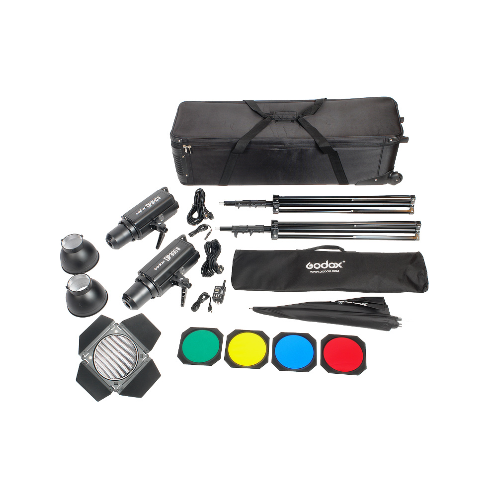 Комплект студийного оборудования Godox DP300II-C был собран Godox для фотографов, которым необходимо иметь качественное освещение для выездной съемки. В комплект входит: два импульсных моноблока DP300II со стойками 260 см. Также в комплекте предусмотрены различные светоформирующие насадки: софтбокс 80х120 см, белый фотозонт диаметром 101 см, шторки с набором цветных фильтров и рефлектор. Пульт радиосинхронизации Godox XT-16 поможет удобно управлять настройками комплекта. Прочная сумка на колёсиках для транспортировки и хранения вмещает весь комплект.