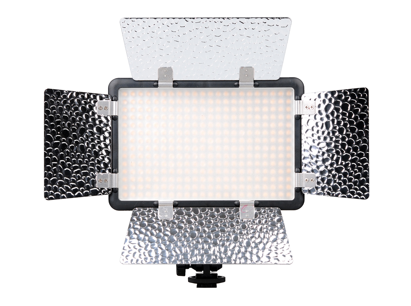 308 высококачественных светодиодов обеспечивают высокую яркость. Беспроводная система синхронизации в группы (6 групп и 16 каналов), дистанционная регулировка яркости и цветовой температуры. Три модели с большим ЖК дисплеем. Питание от литиевого аккумулятора или сетевого адаптера. Шторки в комплекте помогают создать больше световых эффектов.