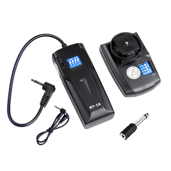 Пульты ДУ для студийных вспышек Godox используются для синхронного управления фотокамерой и студийной вспышки. Эффективно работают с 1,2,4 или 16 каналами. Приемник питается от двух щелочных батареек ААА; частота передачи сигнала – 433МГц. Рабочая дистанция – от 20 до 30 метров. Скорость синхронизации – 1/200 с.