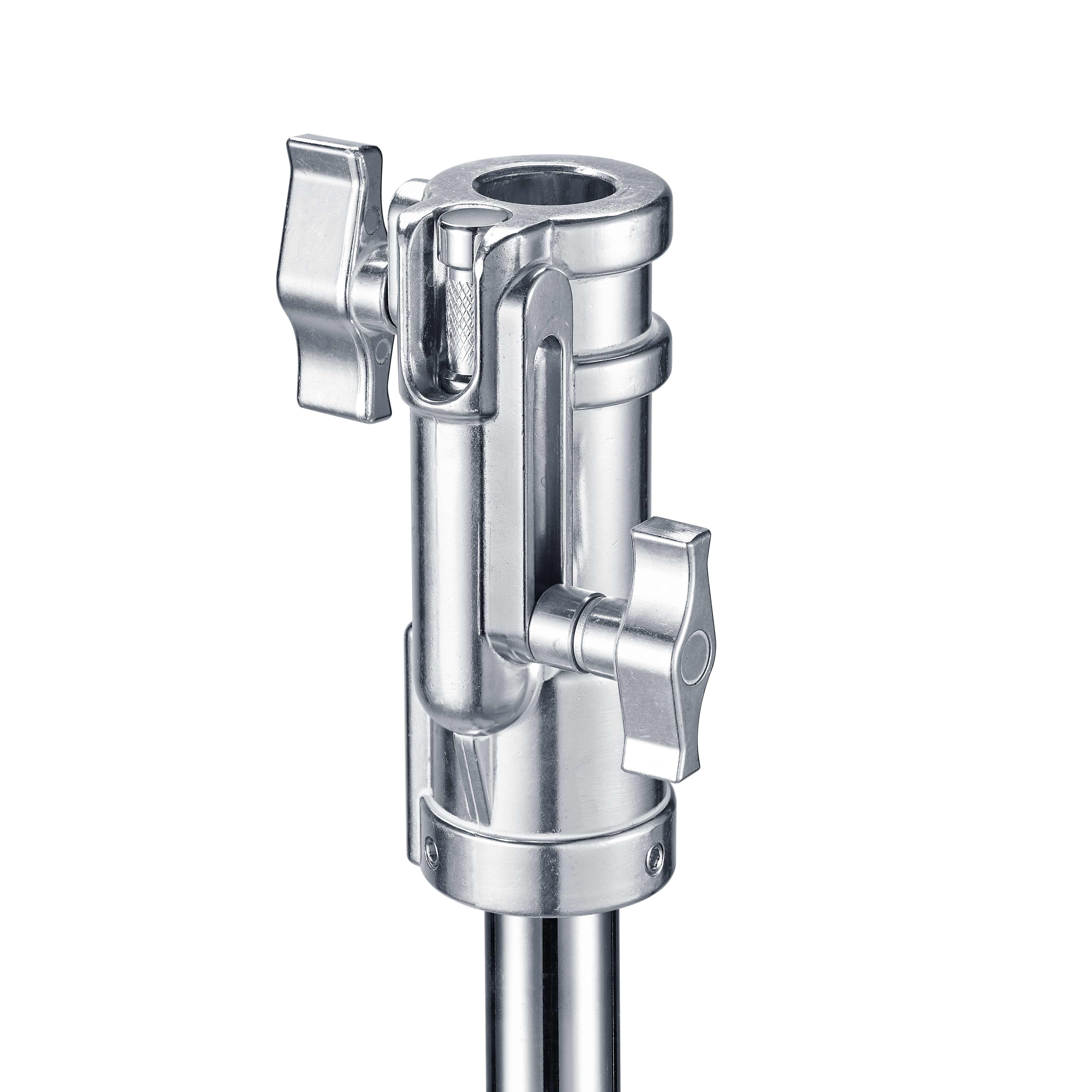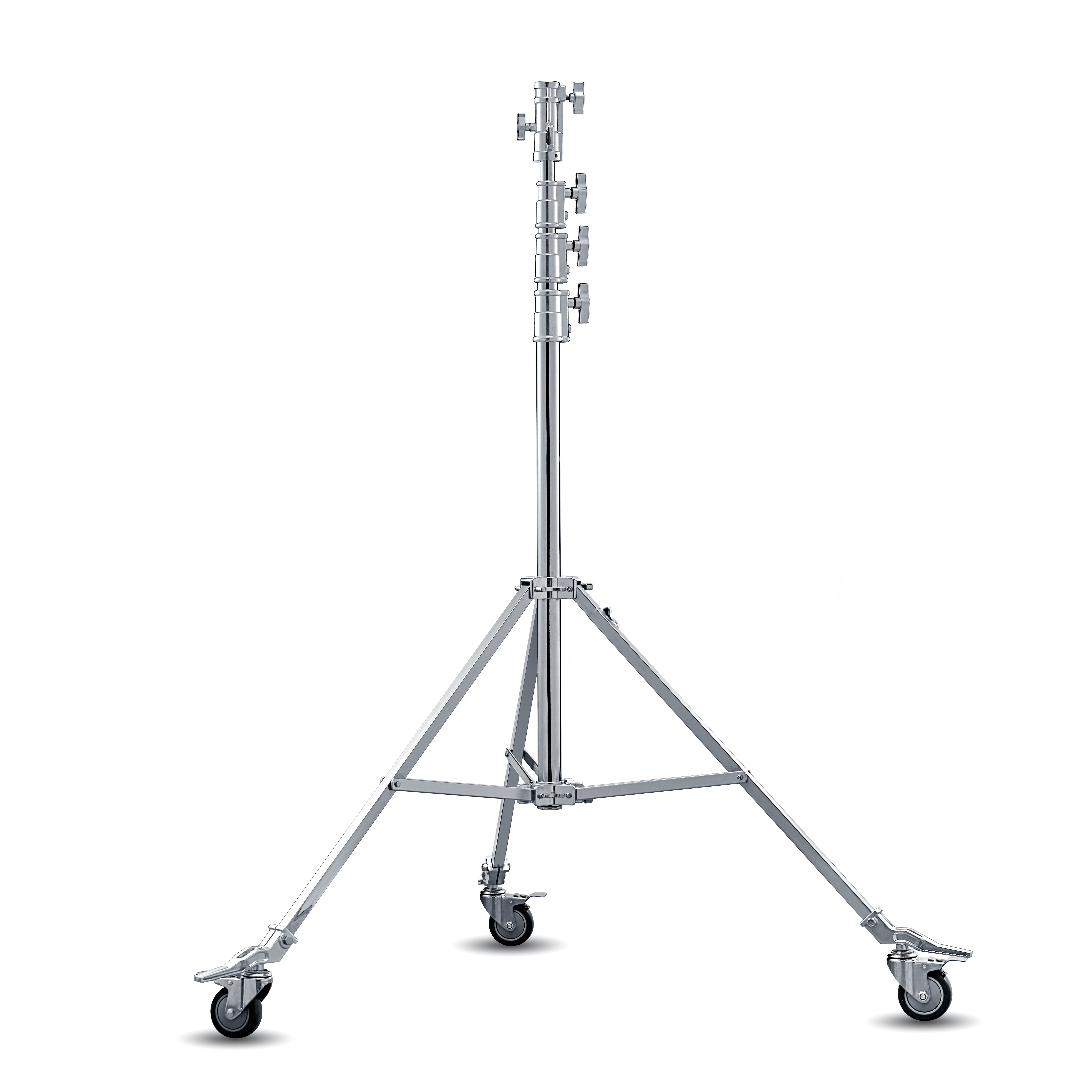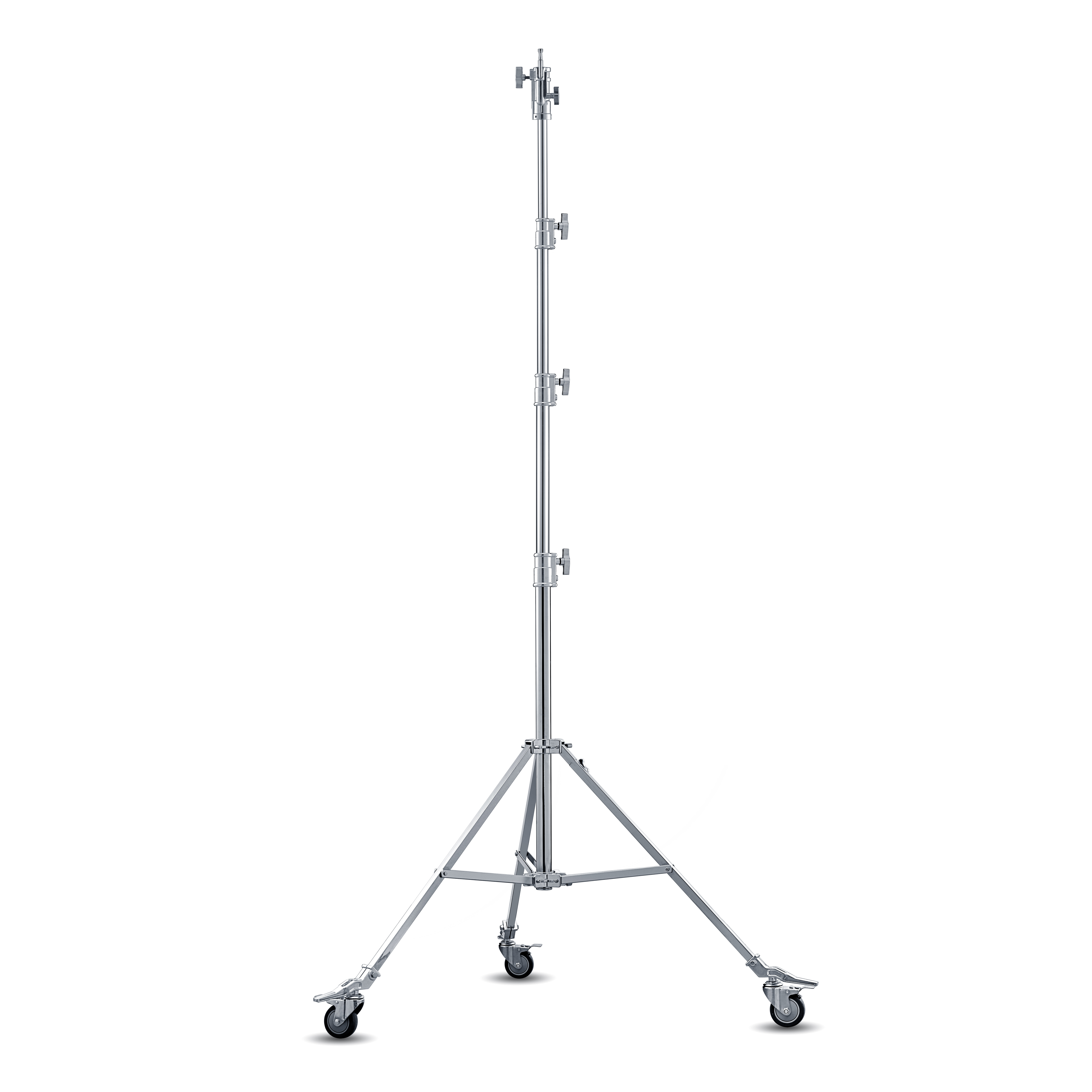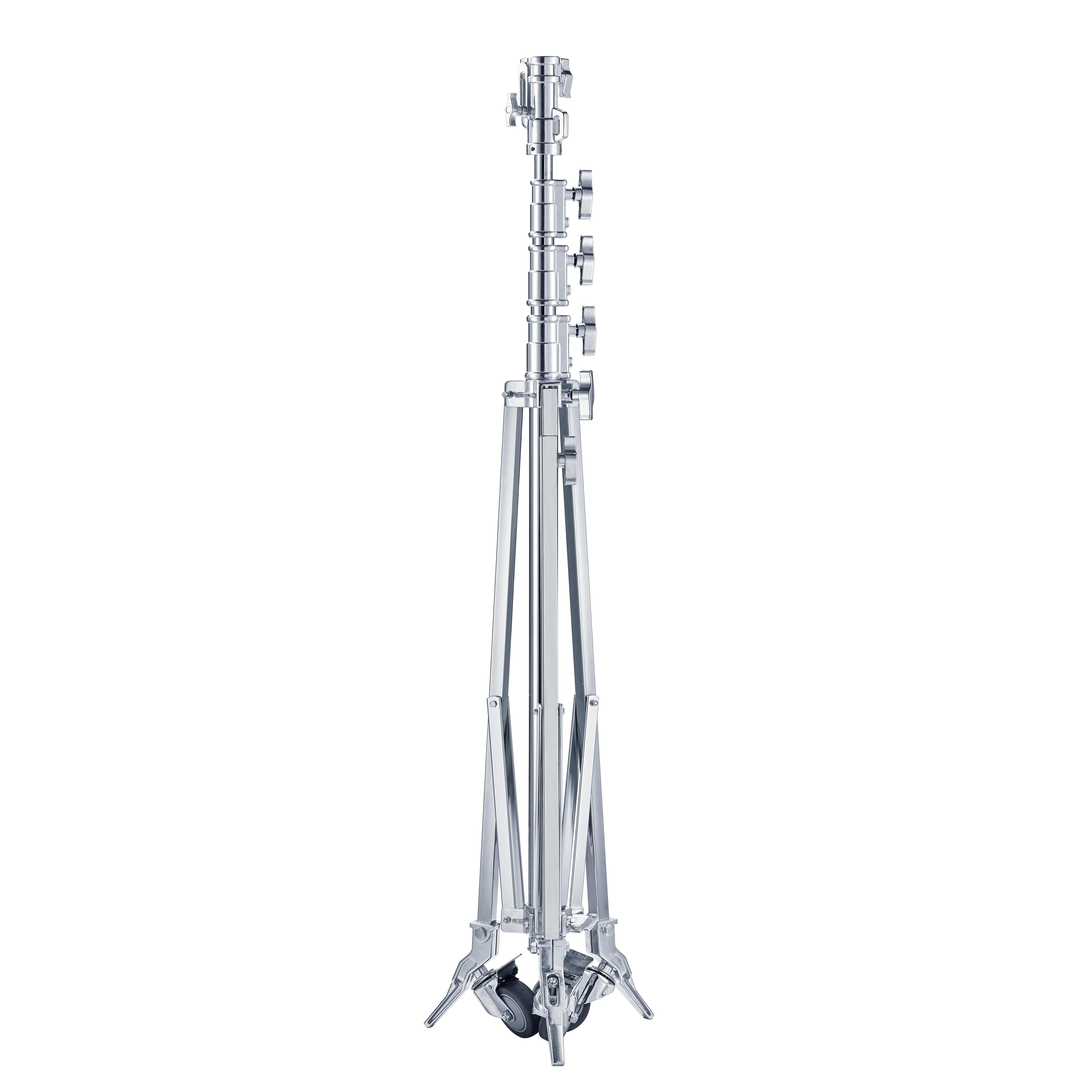 Godox SA5045 - сверхпрочная стальная студийная стойка на колесах со складным основанием, выдерживающая нагрузку до 40 кг. Она обеспечивает превосходную устойчивость благодаря прочной и крепкой конструкции. Высота стойки в разложенном виде составляет от 146 см до 450 см. Благодаря наличию телескопической ножки стойка может выравниваться на рельефной поверхности, лестнице или наклонной поверхности. Стойка оснащена креплением 1-1/8" Junior и выдвижным шпиготом 5/8", который может быть повернут на 90 градусов, что позволяет устанавливать оборудование в требуемом положении.