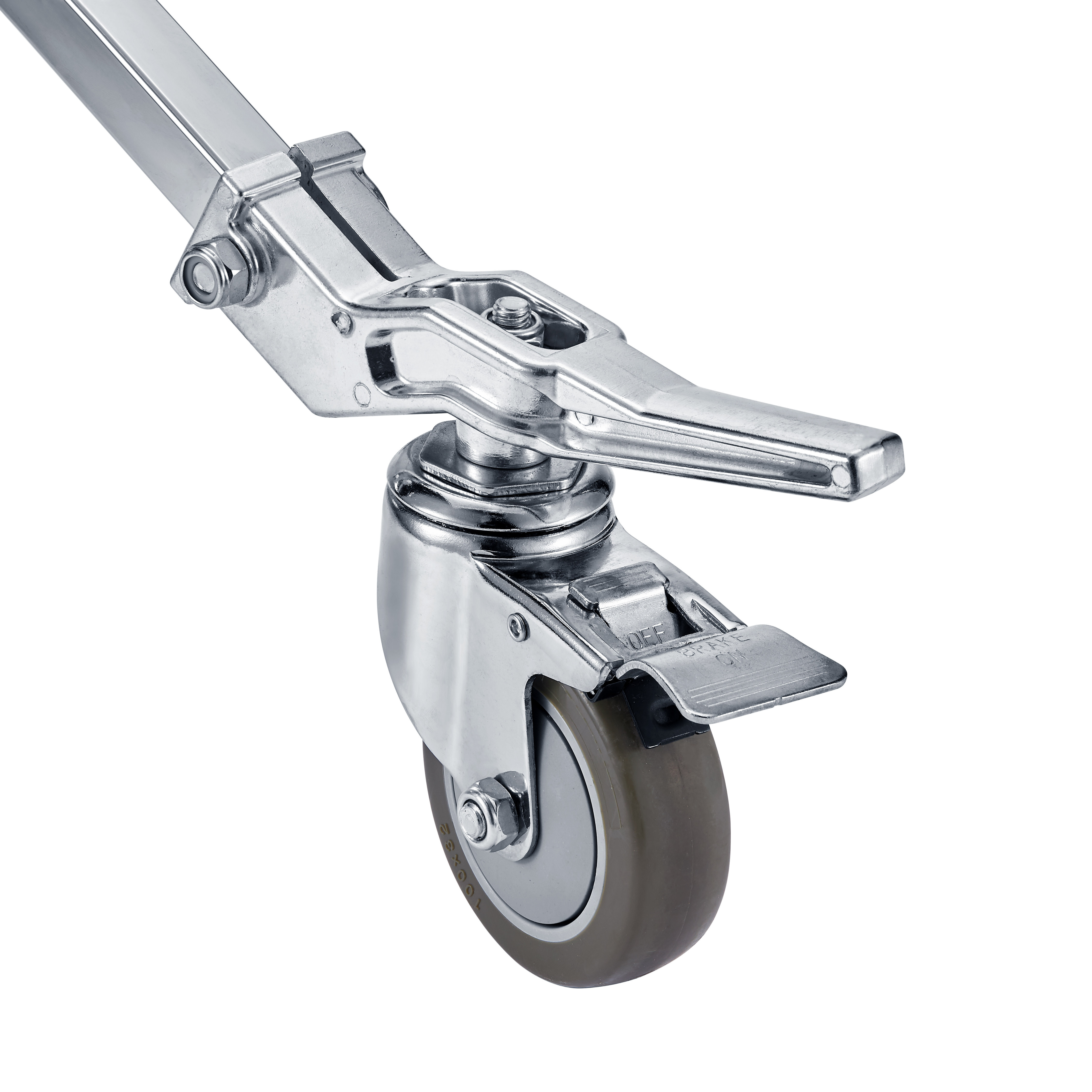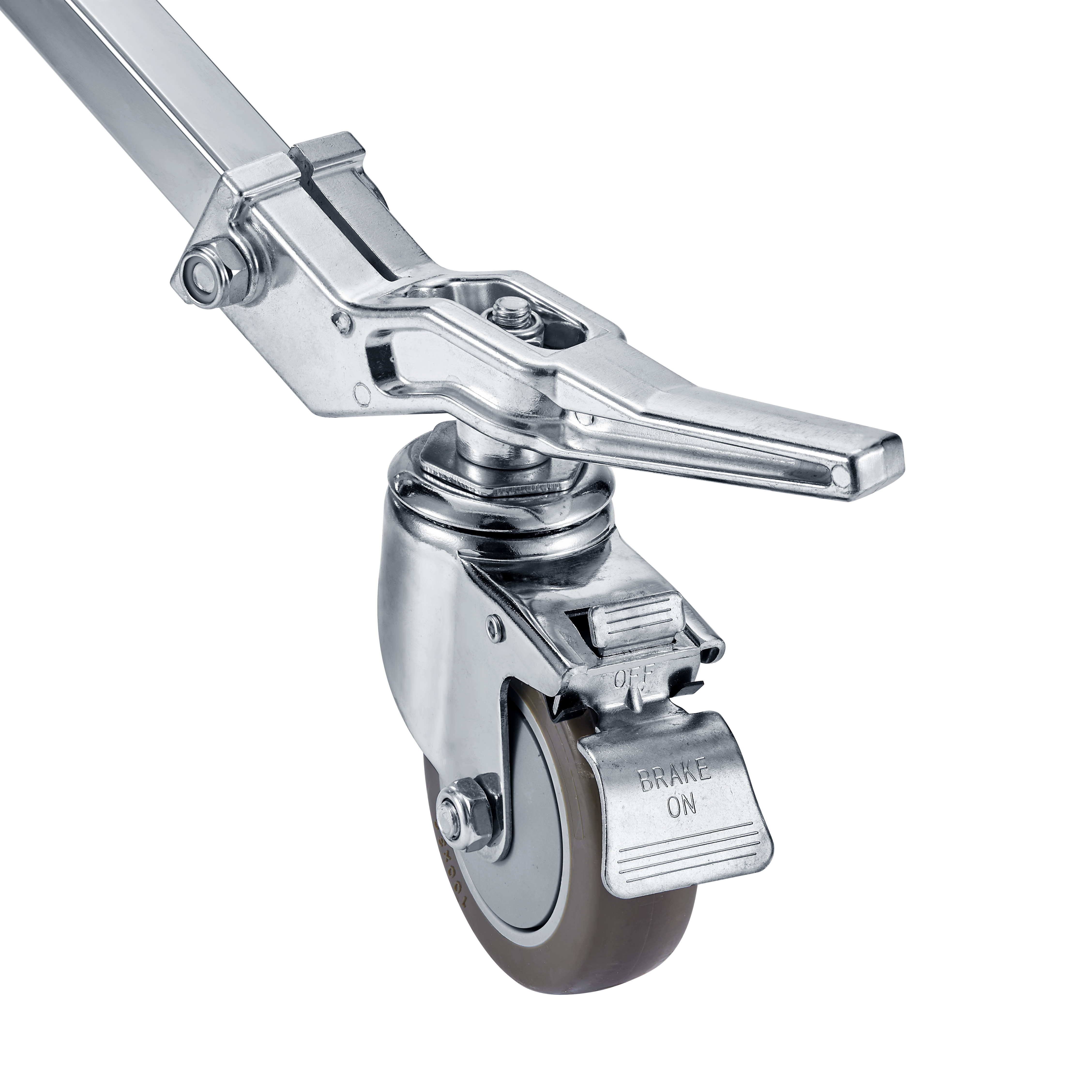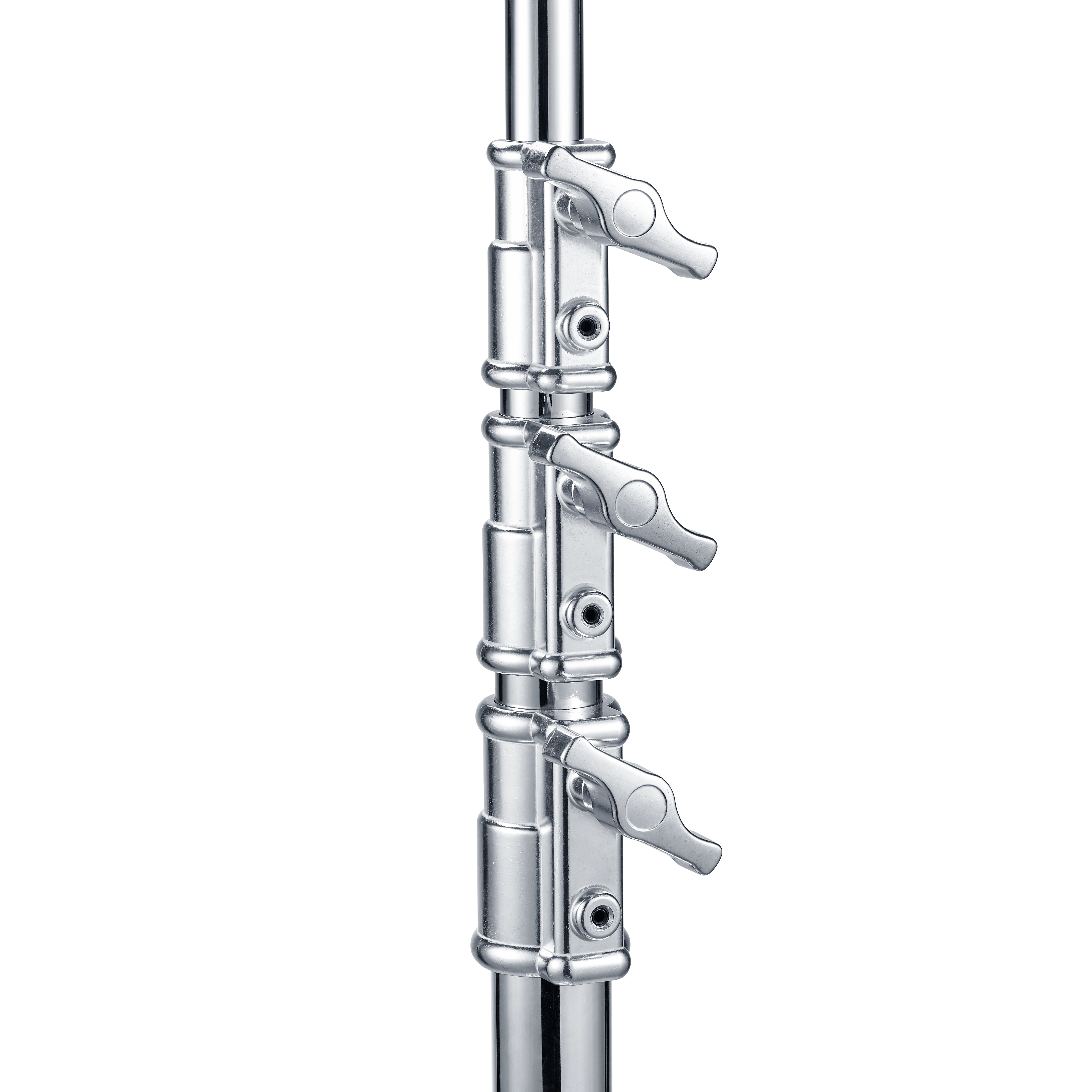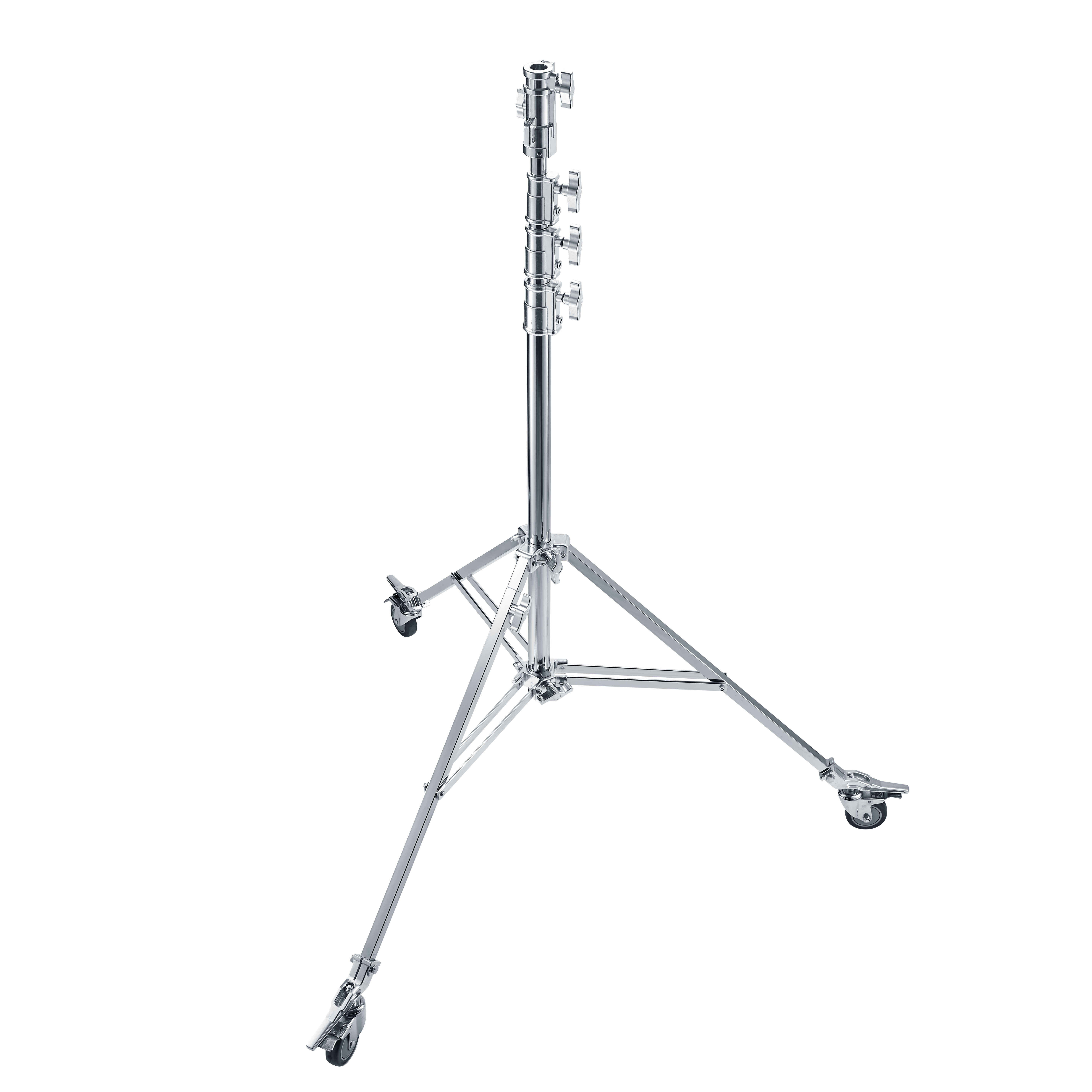 Godox SA5045 - сверхпрочная стальная студийная стойка на колесах со складным основанием, выдерживающая нагрузку до 40 кг. Она обеспечивает превосходную устойчивость благодаря прочной и крепкой конструкции. Высота стойки в разложенном виде составляет от 146 см до 450 см. Благодаря наличию телескопической ножки стойка может выравниваться на рельефной поверхности, лестнице или наклонной поверхности. Стойка оснащена креплением 1-1/8" Junior и выдвижным шпиготом 5/8", который может быть повернут на 90 градусов, что позволяет устанавливать оборудование в требуемом положении.