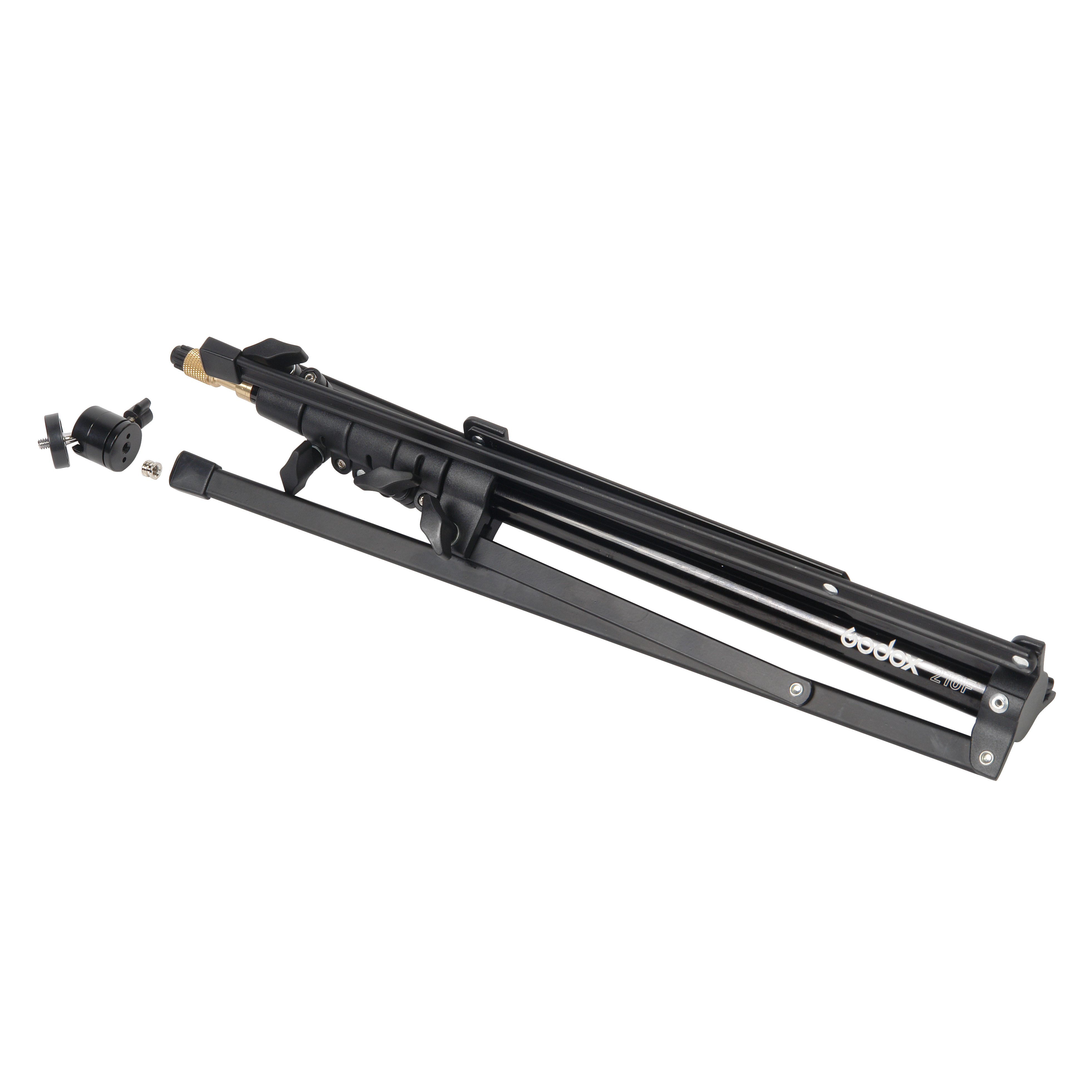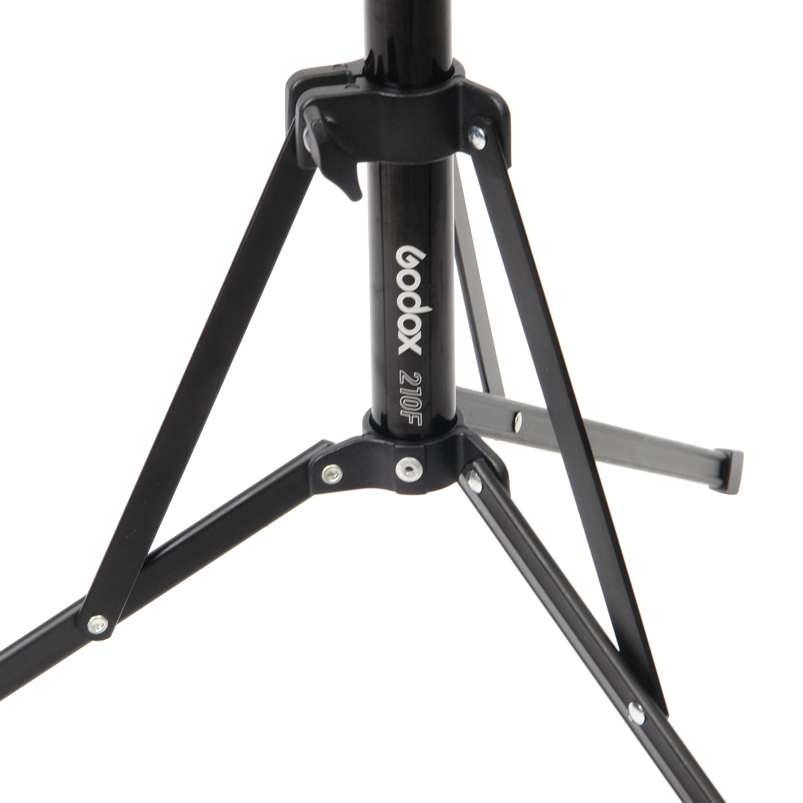 Godox 210F - алюминиевая стойка-тренога с 5-секционной телескопической центральной колонной, на конце которой закреплен несъемный латунный шпигот диаметром 5/8” с резьбой 1/4” и шаровой головкой. Стойка предназначена для установки цифровых камер для съемки в фото- или видеостудии, а также на выезде. Максимальная рабочая высота 213 см. Стойка выдерживает осевую (вертикальную) нагрузку до 2 кг.