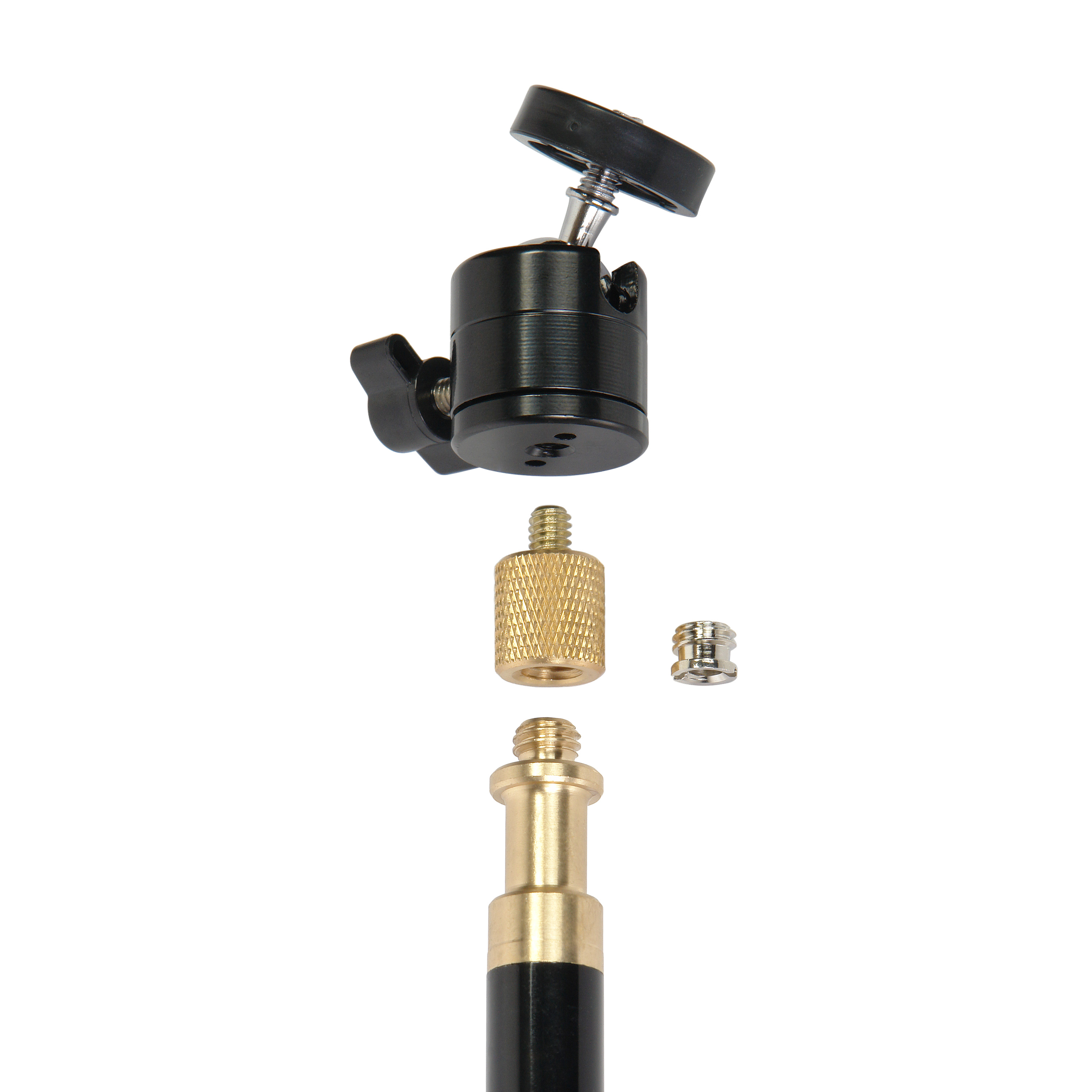 - В комплект входит шаровая головка с винтом 1/4” и гайка-адаптер для резьбы 3/8”