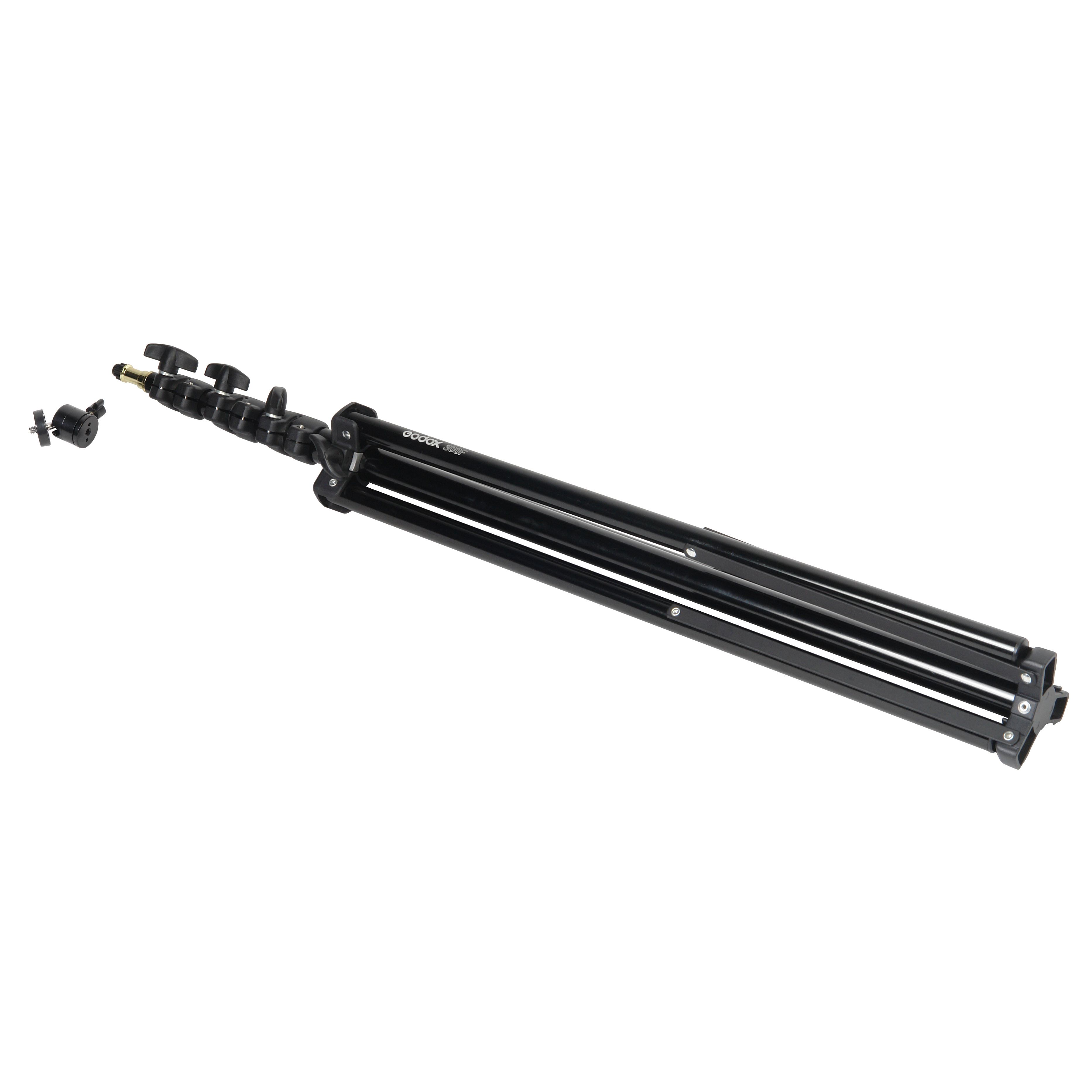 Godox 300F – переносная складная алюминиевая стойка-тренога сшаровой головкой для установки цифровых камер. Нагрузка до 3 кг. Применяется в фото- и видеостудии, а также для использования во время съемок на пленере. Длина стойки в сложенном виде - 86 см, максимальная высота 300 см, вес 1.7 кг.