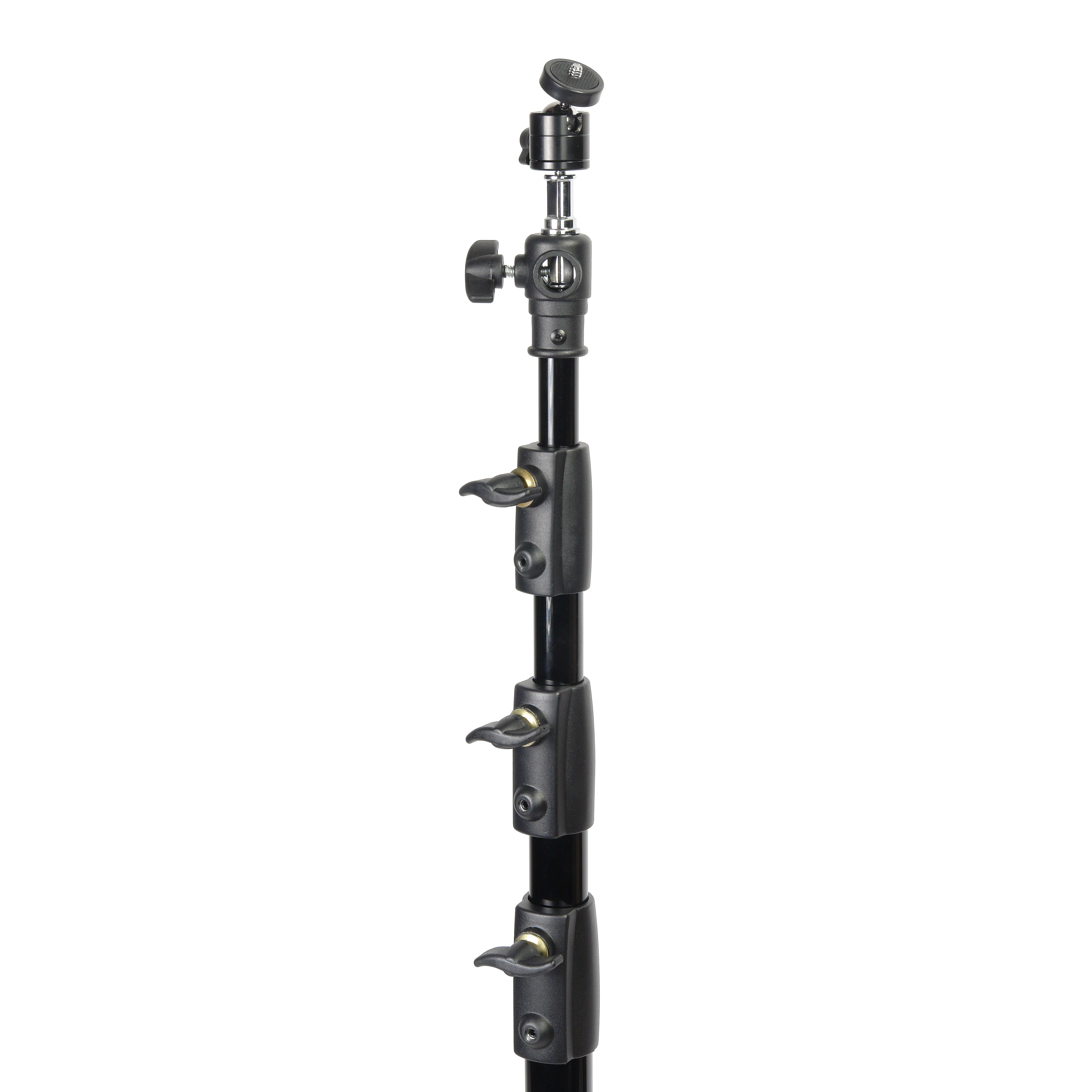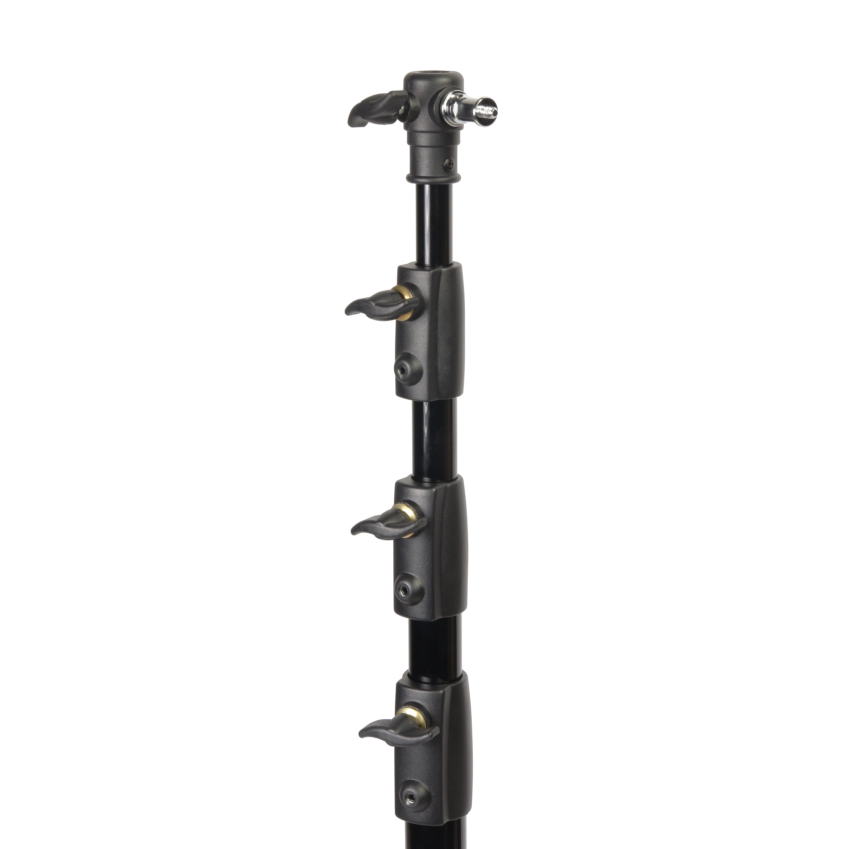 4 телескопические секции увеличенным диаметром 35, 30, 25 и 20 мм надежно фиксируются по высоте, благодаря стальным винтовым зажимам, которые вкручиваются в металлические вкладыши на зажимной муфте секции. Винтовые зажимы оснащены крупными ручками из прочного ABS-пластика.