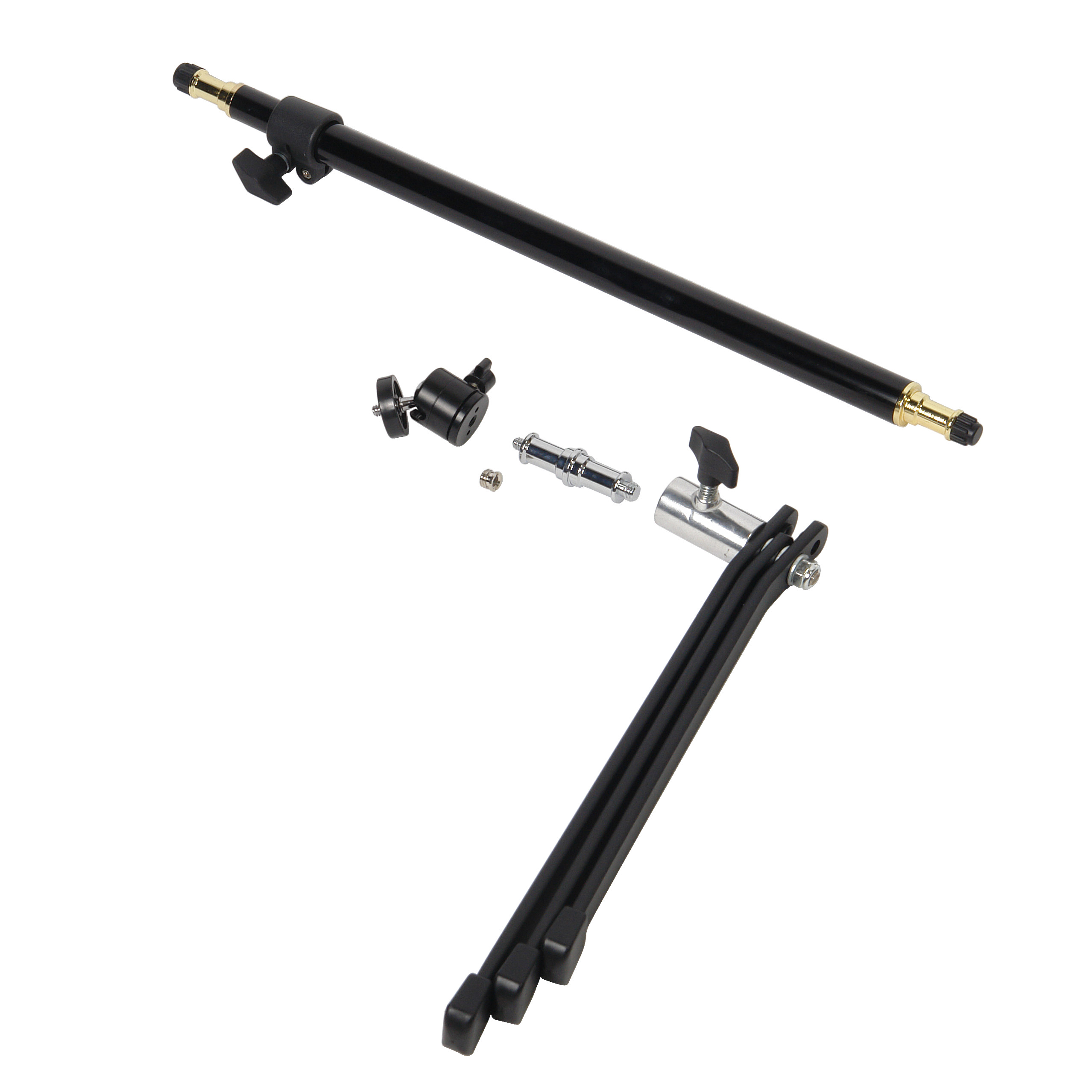 В комплект стойки входит стальной палец-адаптер с резьбой 1/4”, который может устанавливаться вместо колонны - в этом случае стойку-треногу можно использовать, как «лягушку» - для установки съемочного оборудования в самой нижней точке. Как вариант, можно устанавливать телескопический колонну посередине, а палец-адаптер закреплять на конце одной из ног, тогда оператор одновременно может использовать не только цифровую камеру, но и осветитель или микрофон.