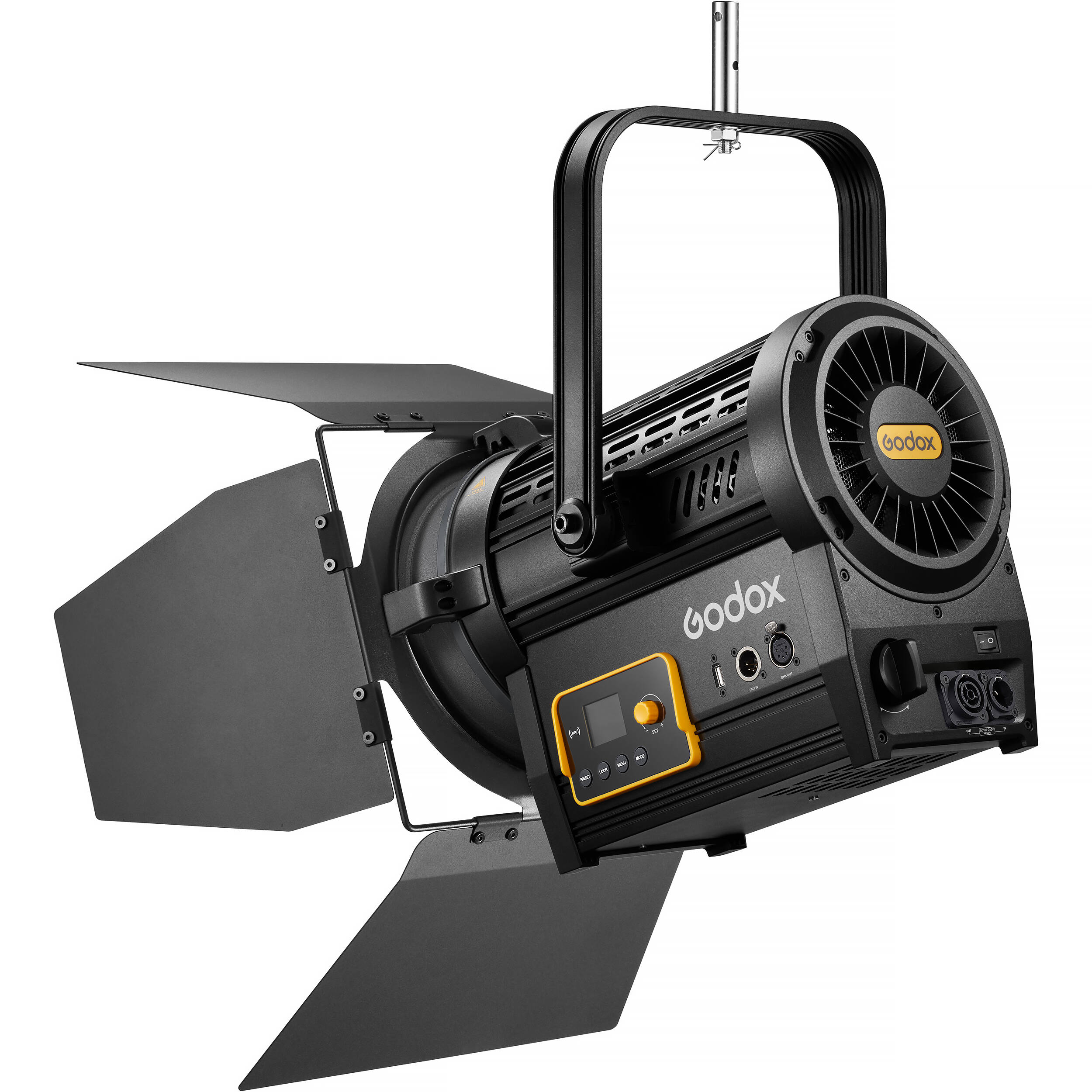 Godox F7-300R — полноцветный LED-осветитель с линзой Френеля и высокой точностью цветопередачи. Светодиодный модуль мощностью 300 Вт работает без мерцания, создавая яркий и стабильный световой поток. Регулируемый угол рассеивания 15–60° и обновленные шторки позволяют точно фокусировать свет на нужной области сцены. Благодаря бесшумному пассивному охлаждению в металлическом корпусе прибор идеален для телестудий и кинопроизводства.