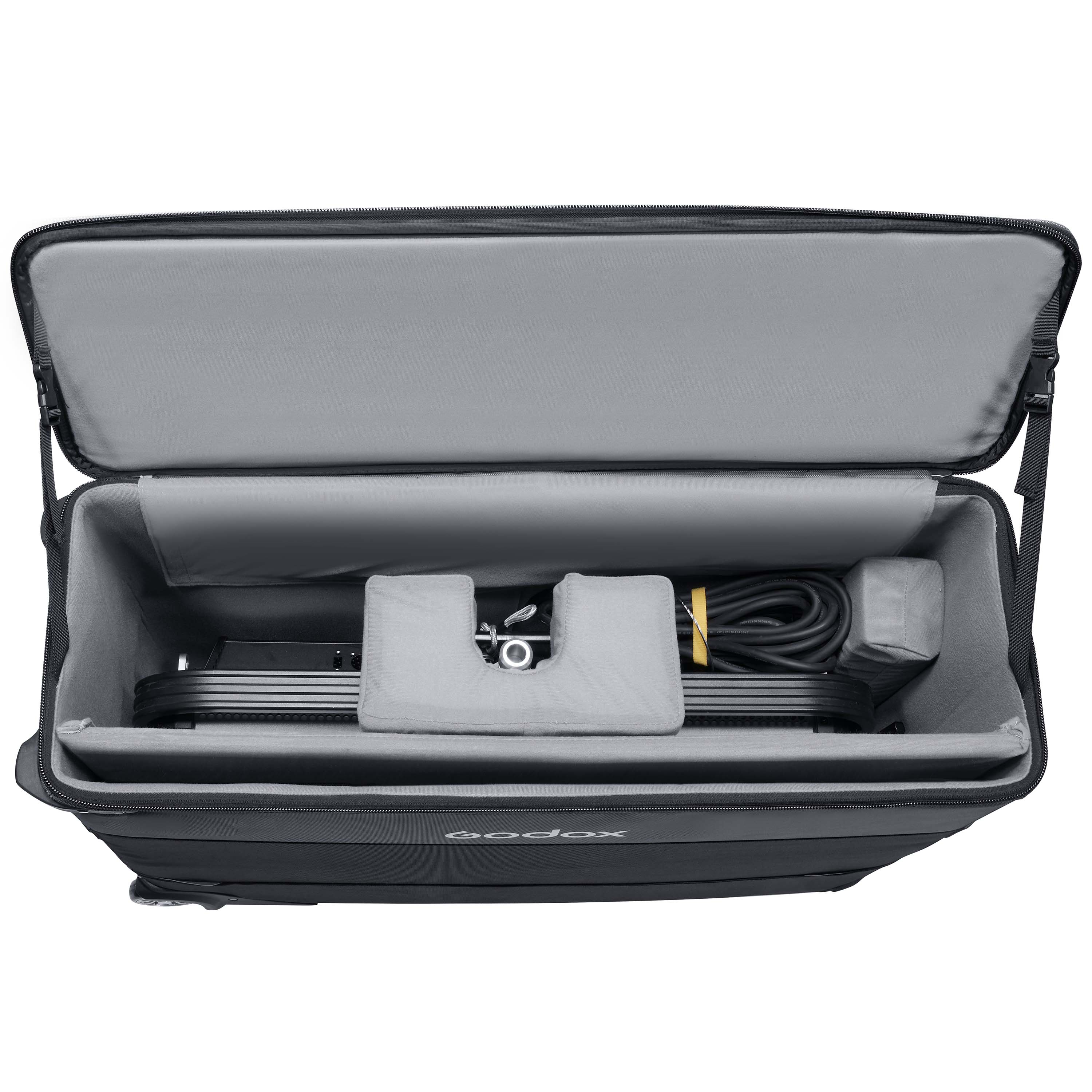 Блок управления и источник питания осветительного прибора интегрированы в его корпус, что облегчает транспортировку и эксплуатацию. Осветительный прибор работает от сети с напряжением от 100 до 240 В переменного тока, поэтому не требуется преобразование напряжения в разных регионах.