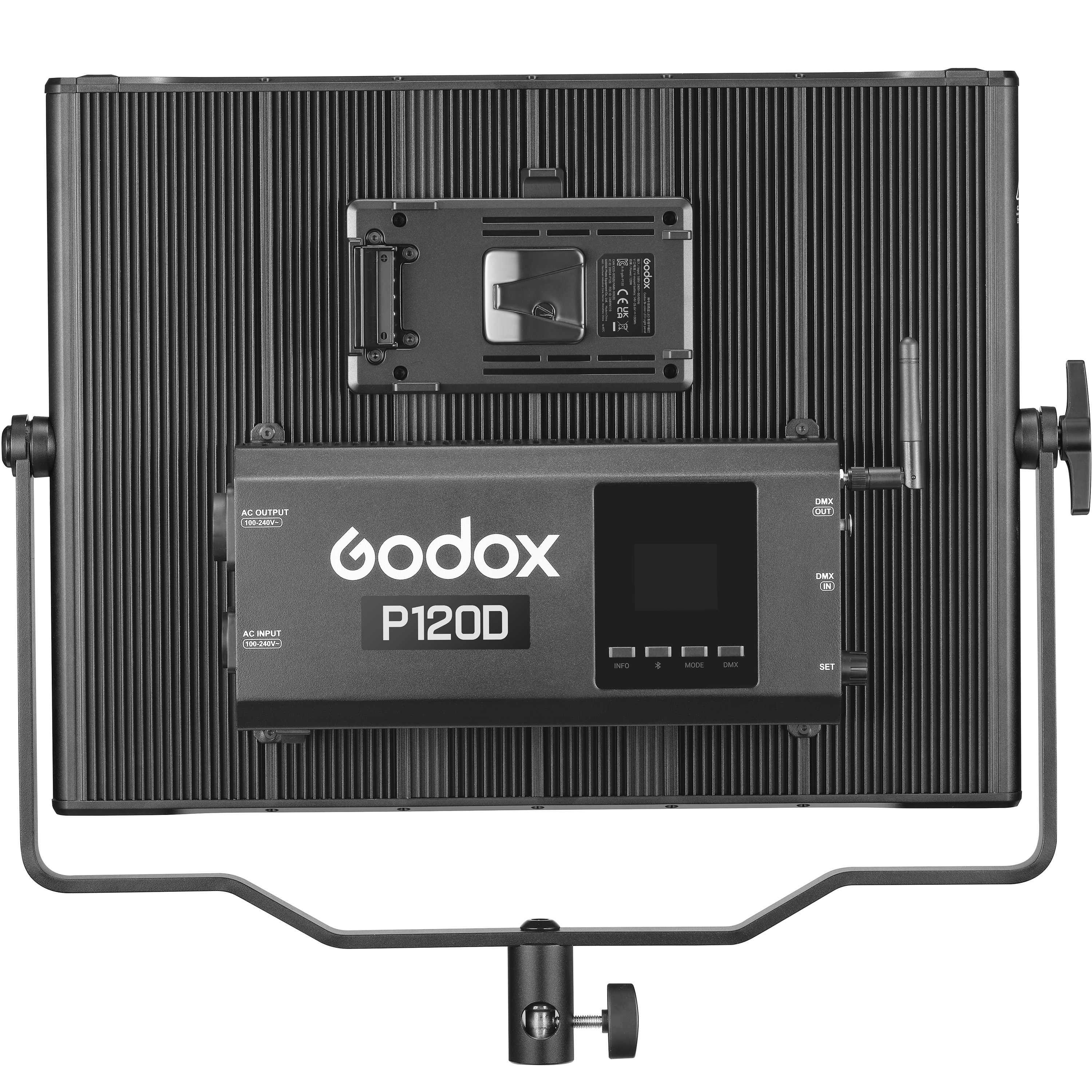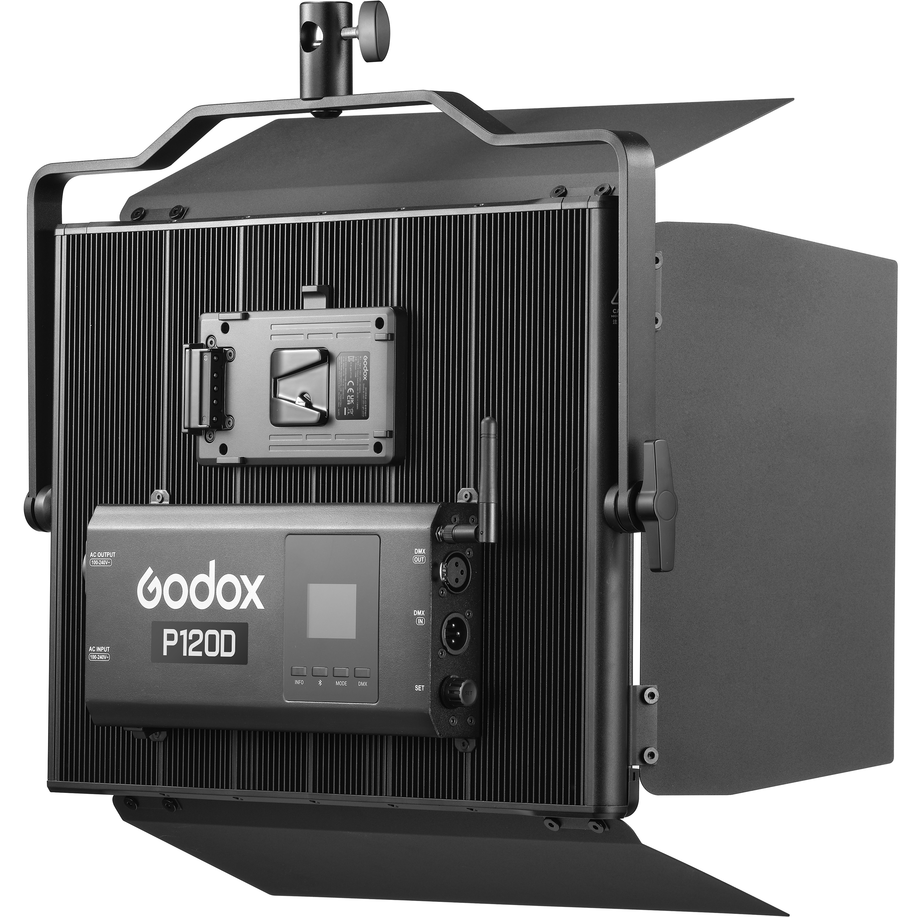 P120D/Bi оснащен входными и выходными разъемами для последовательного подключения до 5 приборов, а встроенная площадка для аккумулятора V-mount обеспечивает универсальность и стабильную работу как в помещении, так и на улице.